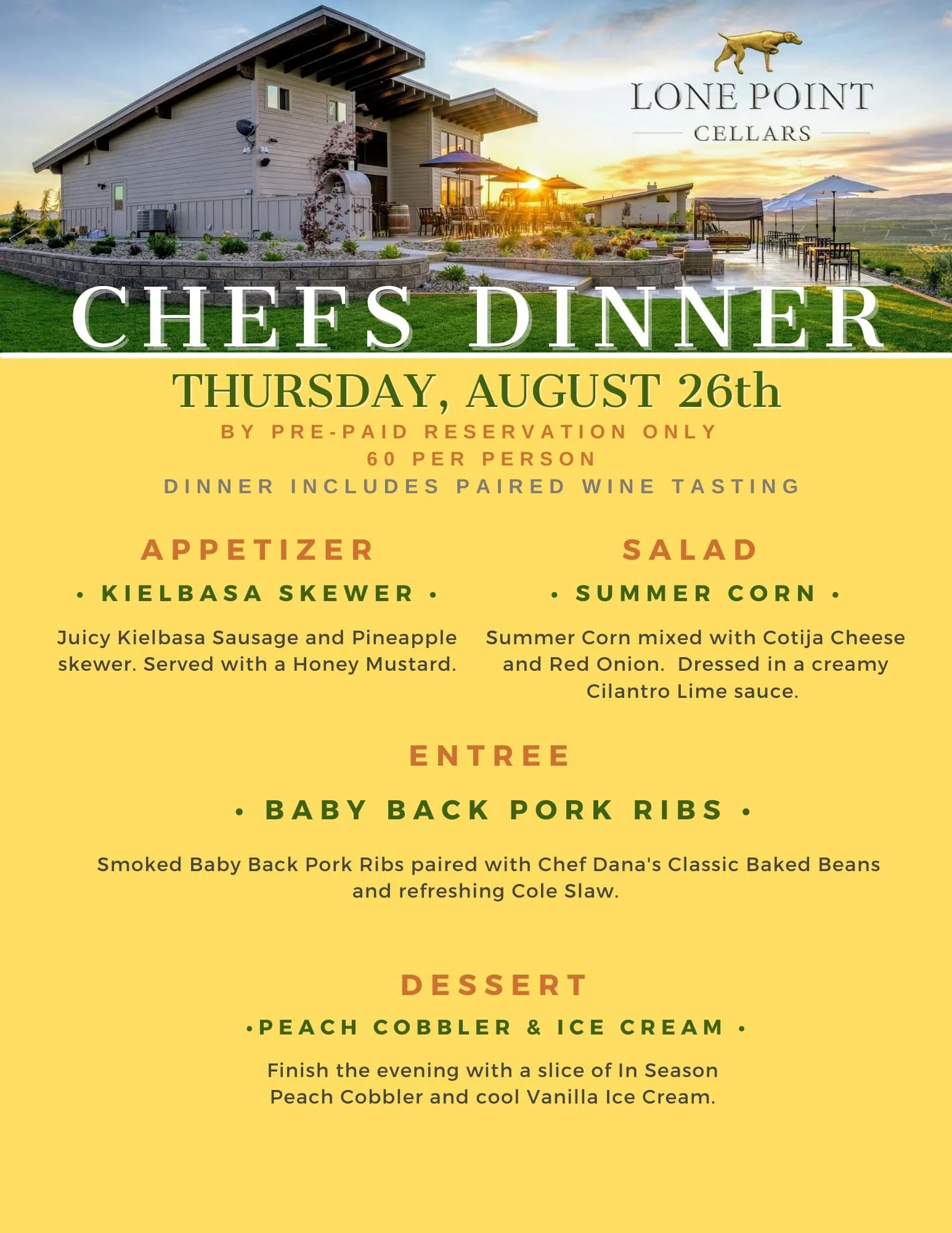 Lone Point Cellars hosts exciting events year-round at our estate in Washington state’s Columbia Valley. From tastings at our winery to chef’s dinners at our vineyard-to-table restaurant, we’ve created an events calendar with something for everyone. If you want to do something in Brewster, Washington, review our upcoming events today!
