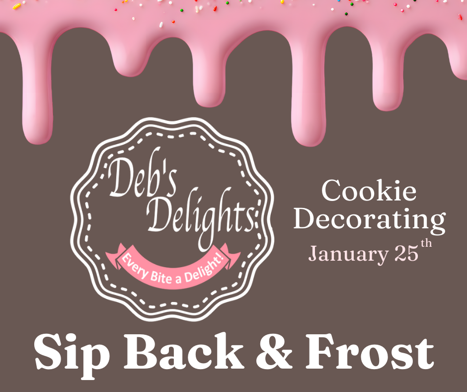 Bring your friends, and learn the art of Cookie decorating with Deb’s Delights! Take your baking skills to the next level with a glass of wine by your side! For more details email Spencer below.